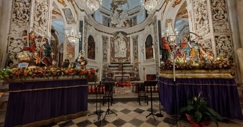 Trapani. Seconda Scinnuta con i gruppi di Gesù nell’orto del Getsemani e L’arresto