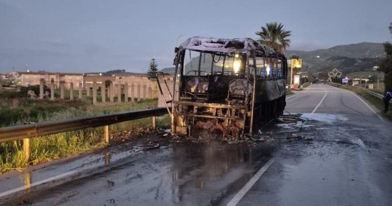 Gibellina, autobus in fiamme