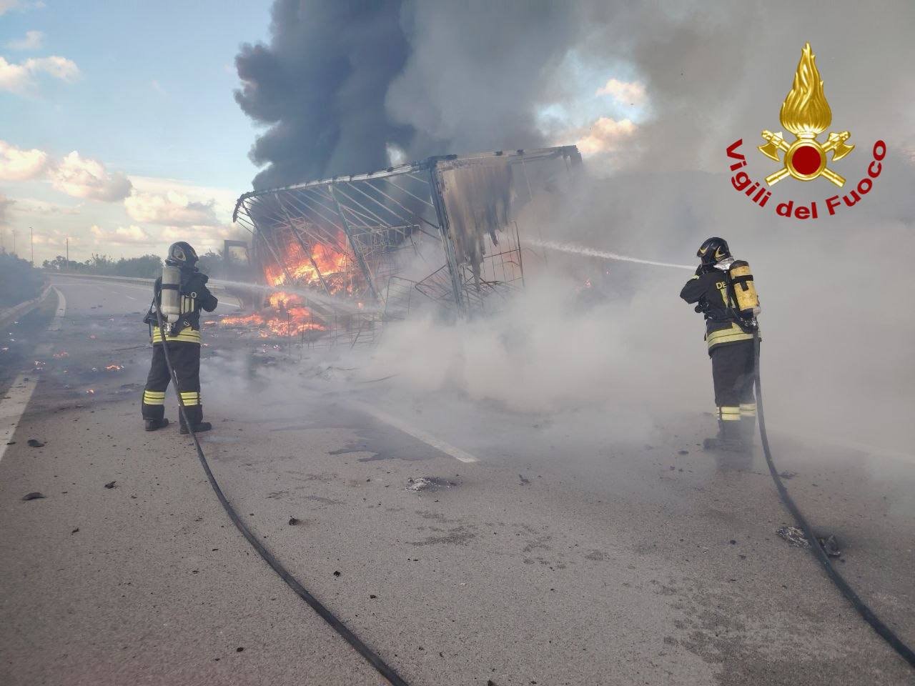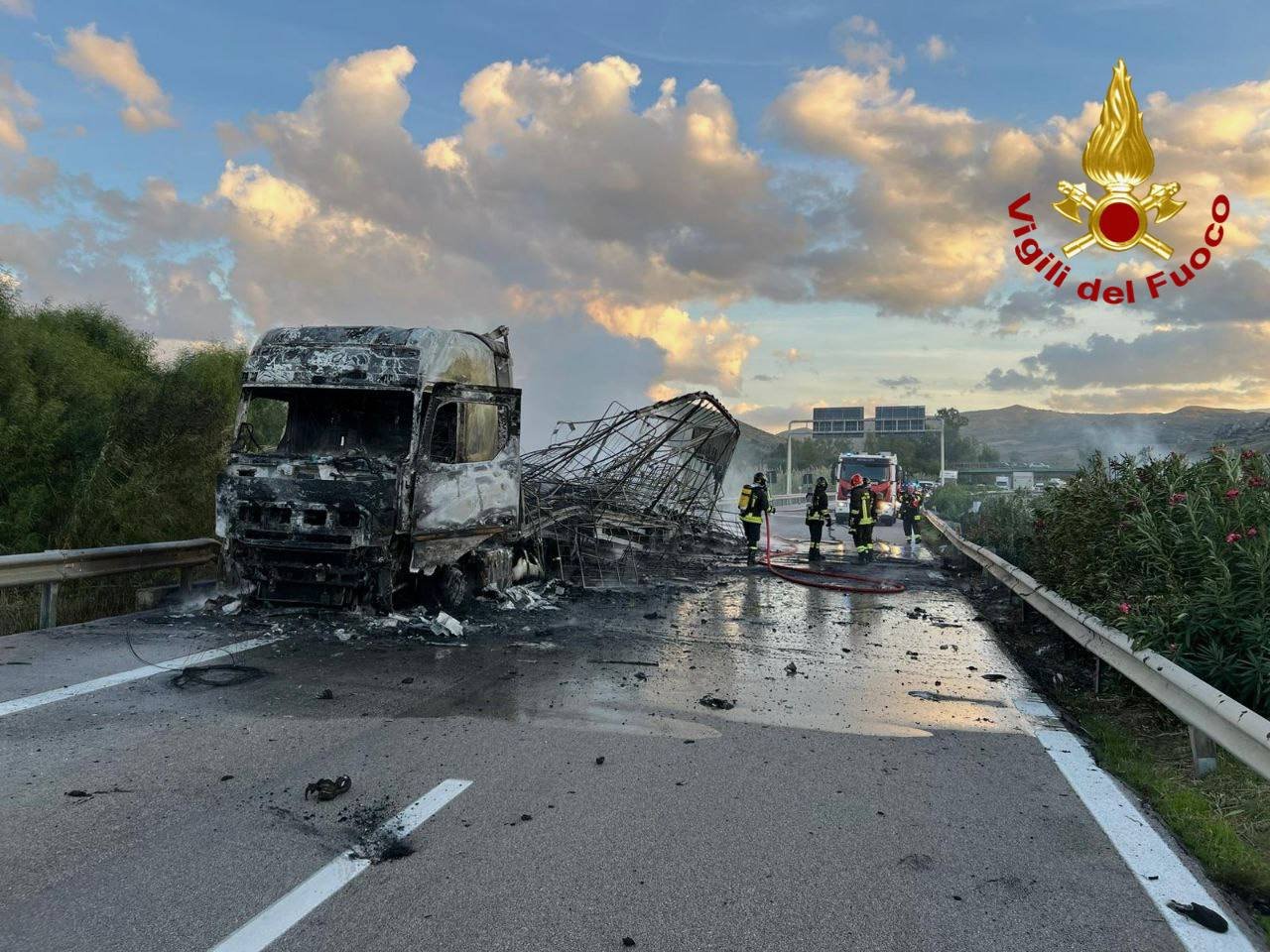 Palermo – Dalle 16:30 circa, quattro squadre dei vigili del fuoco sono intervenute sull’autostrada A19 Palermo-Catania al chilometro 39 in direzione Palermo per l’incendio di un rimorchio contenente capi di abbigliamento.