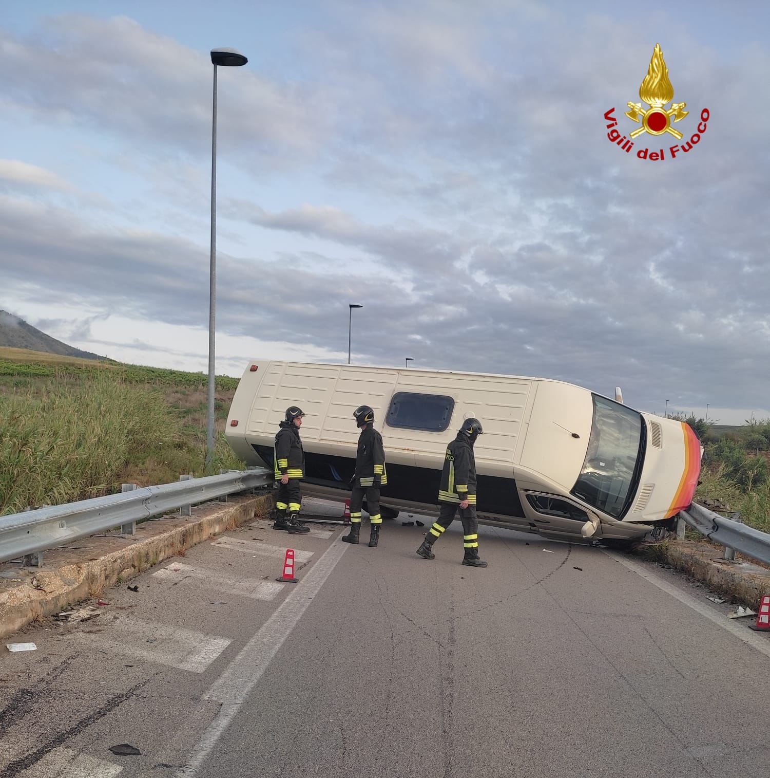 Si tratta di un minibus di 15 posti che si è improvvisamente ribaltato su un fianco, bloccando completamente la carreggiata e causando pesanti disagi alla viabilità. L’incidente si è verificato attorno alle 17.45 circa di oggi. Sul posto è intervenuta una squadra di vigili del fuoco del Comando di Trapani. Il pulmino di 15 posti è rimasto incastrato tra i due guardarail della bretella autostradale di accelerazione, direzione Alcamo, dopo la biforcazione per Mazara del Vallo – Palermo. È prevista l’uscita obbligatoria allo svincolo di Gallitello. La ditta è SAIS TRASPORTI che fa la tratta Trapani Palermo