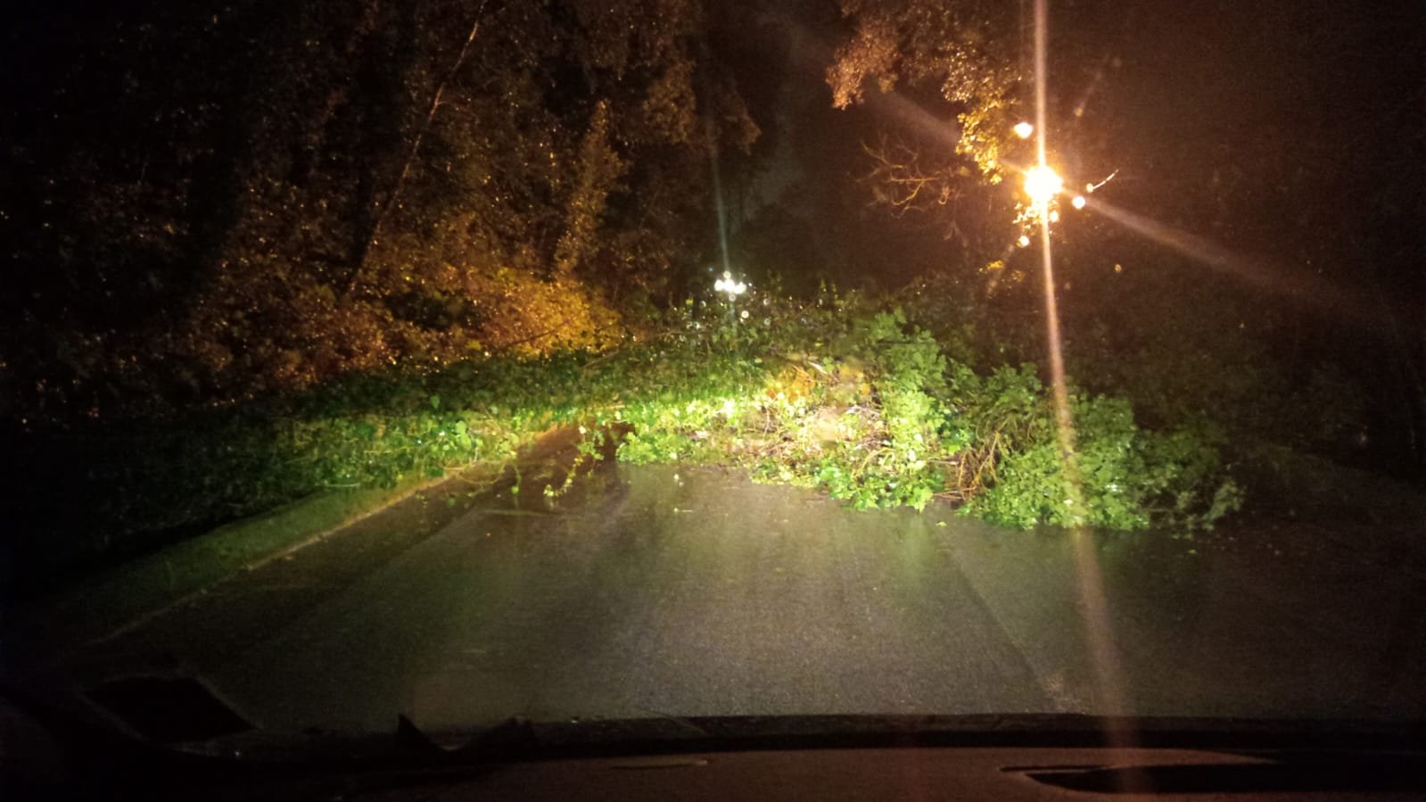 Un albero sdradicato è caduto sulla sede viaria