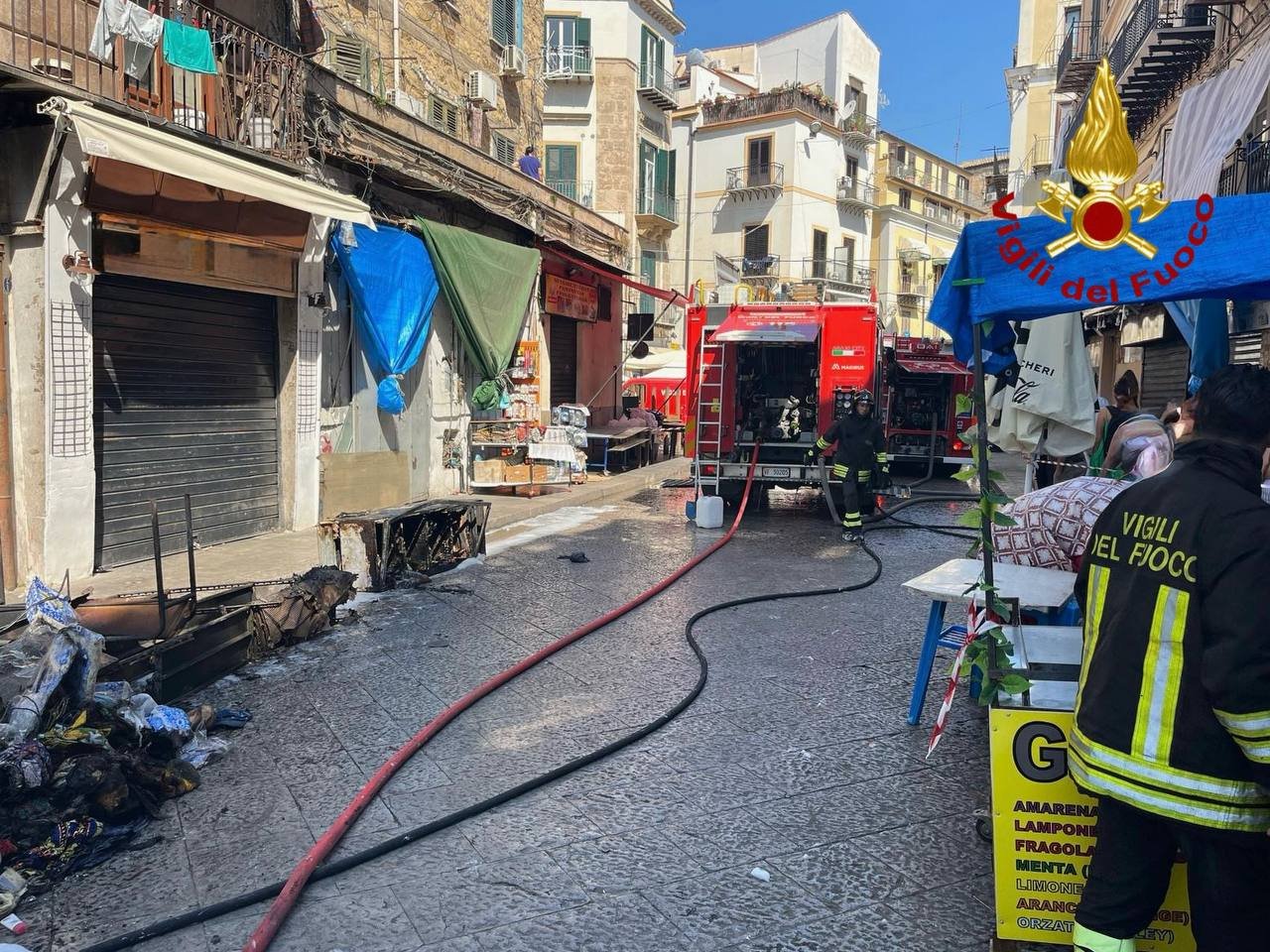 Palermo – Alle 8.10 circa di oggi, alcune squadre Vigili del fuoco di Palermo sono intervenute in piazza Ballarò a Palermo per un incendio che ha coinvolto i locali di un piccolo deposito posto a piano terra contenente vario materiale.