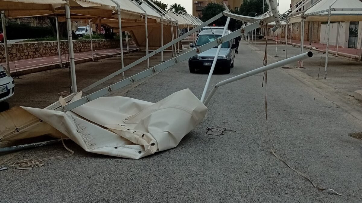 Ad Erice a lavoro da ieri sera la Protezione civile a causa della caduta di alberi. Per precauzione è stato transennato e inibito il mercato del contadino che si trova nei pressi della Cittadella della Salute. A causa del forte vento, alcune delle strutture sono volate via.