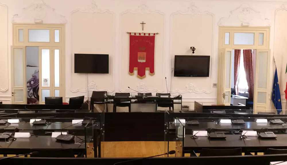 Siamo stai presenti nel momento in cui nelle scale di Palazzo Cavarretta il presidente Mazzeo che lì si era affacciato per chiarire con una persona le ragioni di gravi e offensive accuse lanciate a voce contro di lui dallo spazio riservato al pubblico, è stato quasi aggredito dal soggetto sul quale si sono precipitati per bloccarlo gli agenti della Polizia Locale.