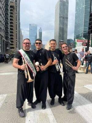 Gli “Ottoni Animati”. “ Il gruppo, composto da artisti trapanesi di grande talento – ricorda Angela Grignano – ha recentemente rappresentato l’Italia e la Sicilia a Chicago, in occasione delle celebrazioni del Columbus Day, portando sul palco l’energia, la professionalità e la creatività che da sempre li contraddistinguono. Si tratta della seconda partecipazione degli Ottoni Animati all’evento statunitense, dopo la prima esperienza del 2018. Ma non sono state certo meno importanti altre loro partecipazioni ad eventi internazionali”.