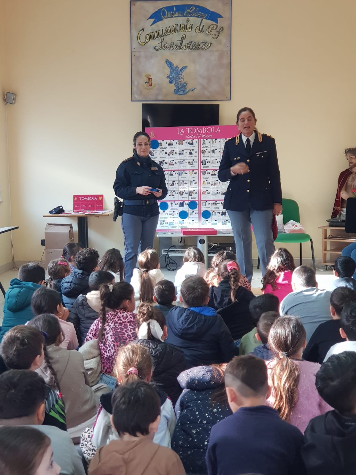 A far gli onori di casa, il dirigente del Commissariato, Silvia Como che, insieme alle sue donne ed ai suoi uomini, ha voluto far sentire l’affetto e la vicinanza della Polizia di Stato agli alunni provenienti da quattro 3° classi elementari dell’istituto scolastico.