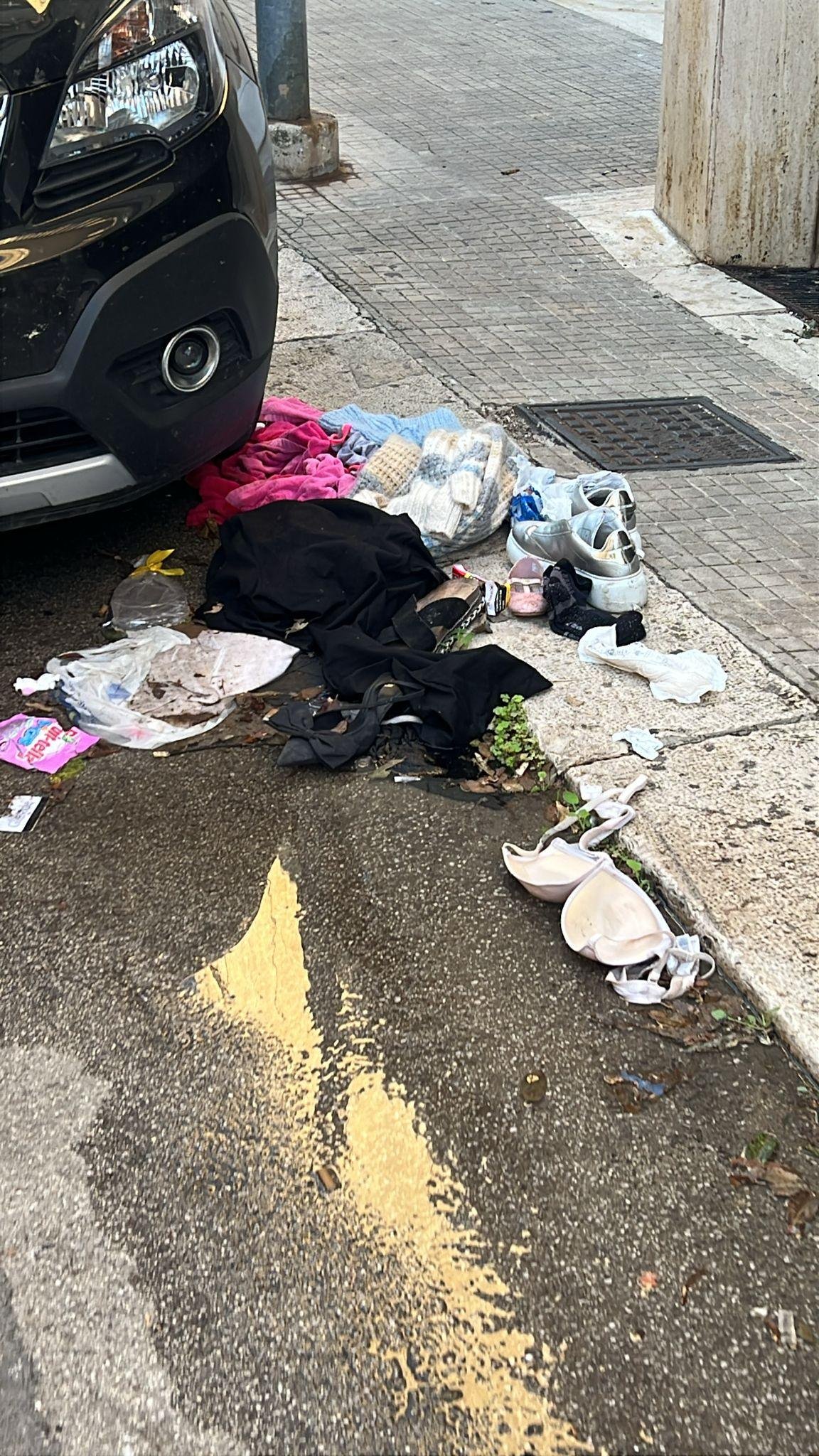 La strada si presentava così stamattina, e nulla c’entrano lo sciopero di venerdì della società Formula Ambiente, o eventuali ritardi ella raccolta odierna, o altre eventuali omissioni di carattere amministrativo. Le uniche colpe sono nostre, della nostra inciviltà, dell’incuria, le colpe sono di chi ha lasciato tutto questo per strada e forse anche di chi ha visto e non ha detto nulla.
