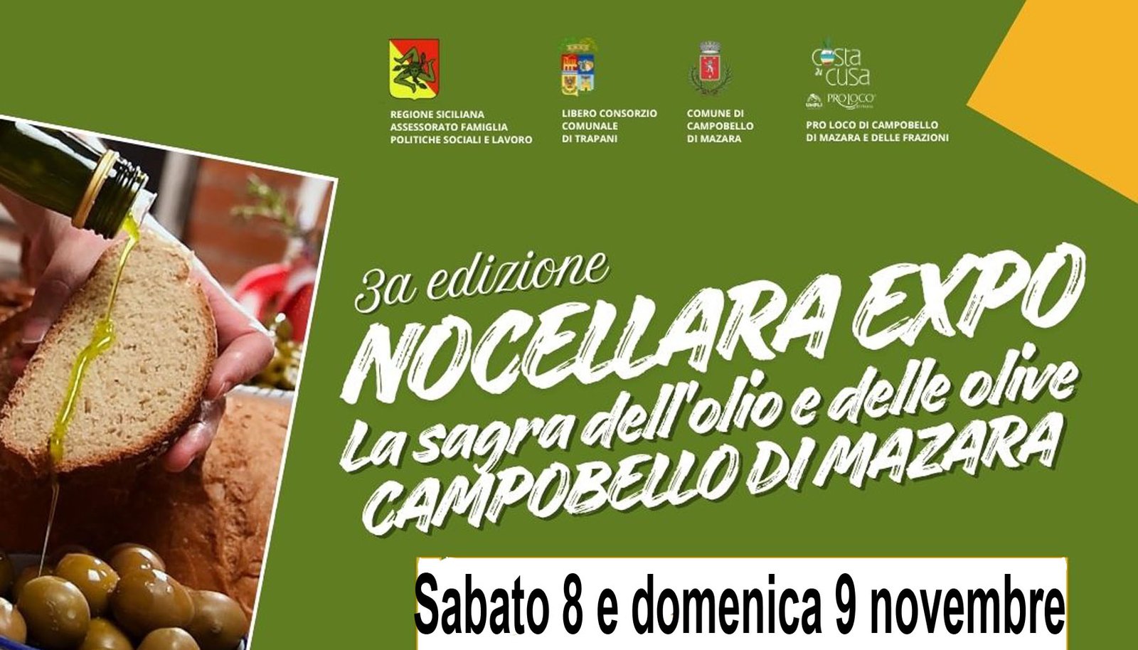 Campobello di mazara – L’8 e il 9 novembre a Campobello la 3ª edizione della “Nocellara Expo – Sagra dell’Olio e dell’Oliva Nocellara del Belìce”