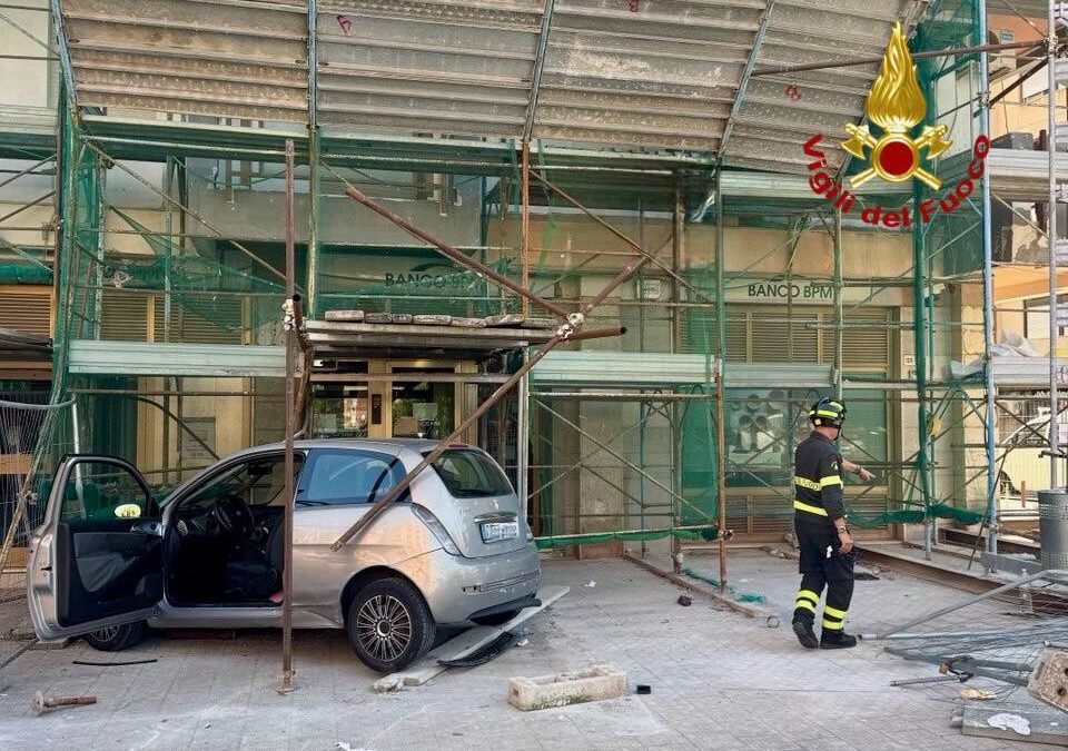 Una vettura si è schiantata su una impalcatura di un palazzo in ristrutturazione.