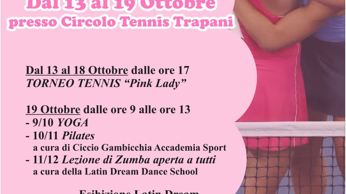 Trapani – Il mese di ottobre si tinge di rosa con la nona edizione del torneo di doppio femminile “Pink Lady 2025”, in programma al Circolo Tennis Trapani di Contrada Milo Errante.