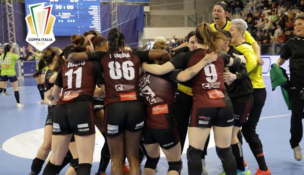 Riccione – Una partita combattuta, la posta in palio era la Coppa Italia 2025 al Play Hall di Riccione ed ancora una volta le Arpie portano a casa la Coppa Italia, ormai non le ferme più nessuno. Finale di partita 25 a 23.