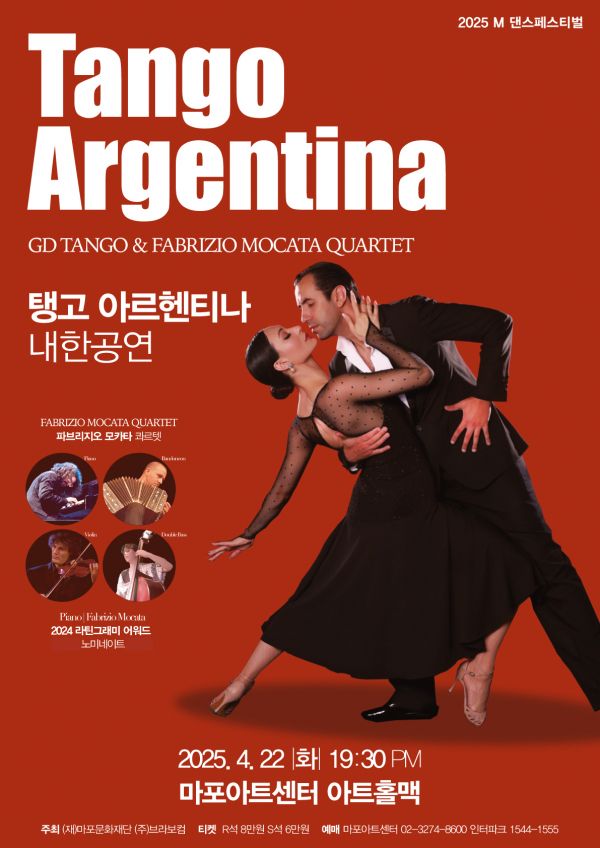 Nato nel 2022 dalla collaborazione tra i coreografi GD Tango – Guillermo Macana e Giovanna Dan – e Fabrizio Mocata, lo spettacolo Tango Argentina unisce la potenza della danza alla qualità musicale di un ensemble dal vivo. Il repertorio spazia dai classici di Carlos Gardel e Astor Piazzolla fino alle composizioni originali dello stesso Mocata, il cui stile fonde tradizione e modernità in modo unico e coinvolgente.