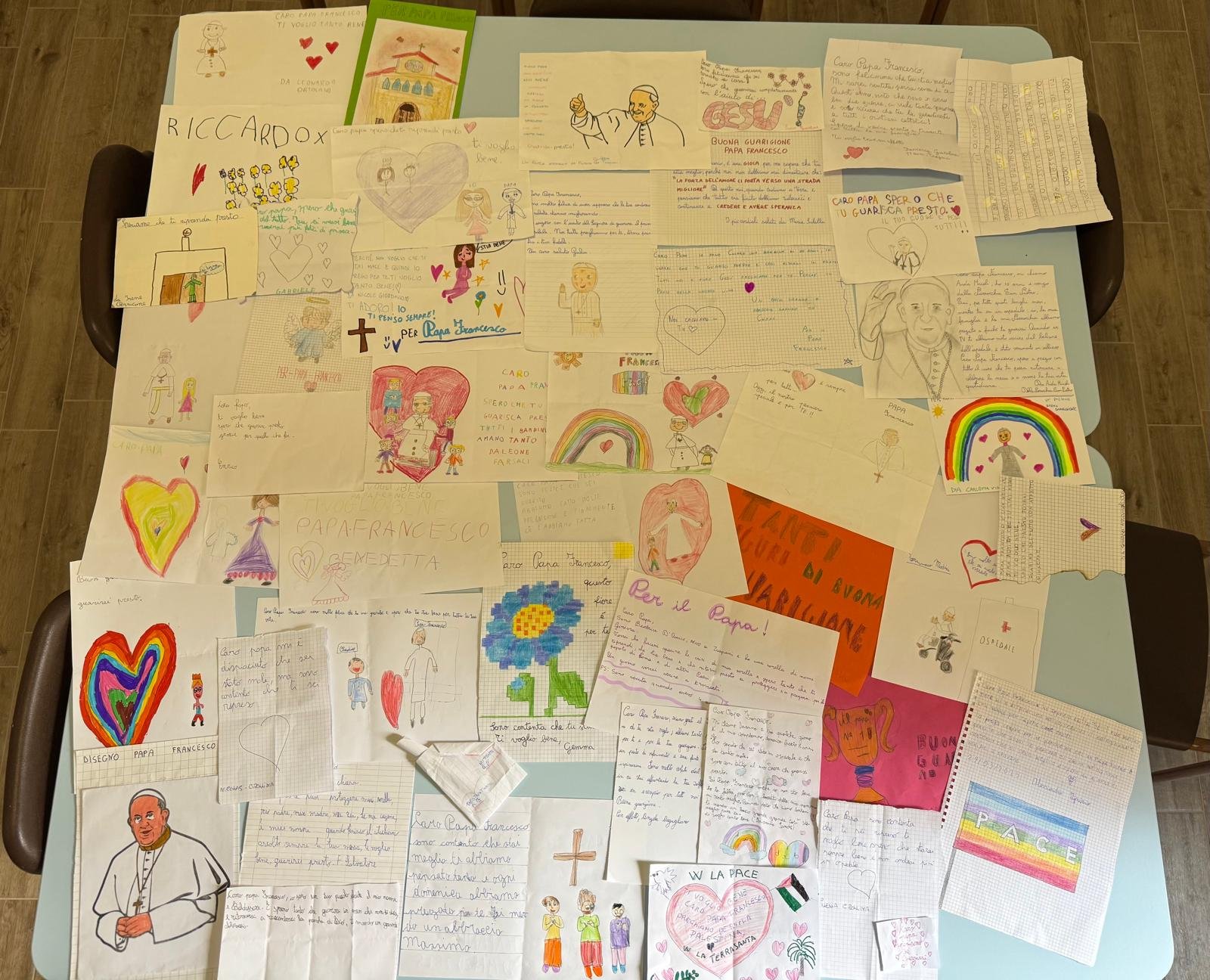 “Il 24 marzo scorso ho coinvolto tutti i bambini e le famiglie del catechismo in una semplice iniziativa e cioè quella di far giungere a Papa Francesco, dopo la sua uscita dall’ospedale, l’affetto della comunità parrocchiale attraverso la voce dei più piccoli – racconta il parroco don Giuseppe Bruccoleri – L’idea era che i bambini scrivessero un breve messaggio su un foglietto per esprimere la nostra solidarietà e la gioia per il suo miglioramento. I bambini potevano esprimersi liberamente con un disegno, una frase o un testo scritto da loro.