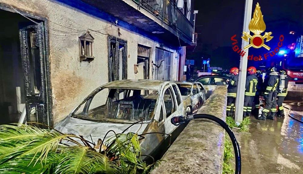 Ad andare in fiamme, con molta probabilità il rogo è doloso, sono state tre autovetture. Il fumo ha avvolto due palazzine e otto appartamenti.