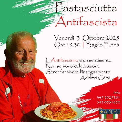 Misiliscemi – “Una forchettata di antifascismo” per ricordare e riflettere. Domani 3 ottobre alle 19:30 presso il Baglio Elena di Pietretagliate (Misiliscemi) l’Anpi di Trapani celebra la Pastasciutta antifascista, in memoria di quella organizzata dalla famiglia Cervi a Campegine (RE) il 25 luglio 1943 per festeggiare la fine dei 21anni di dittatura fascista.
